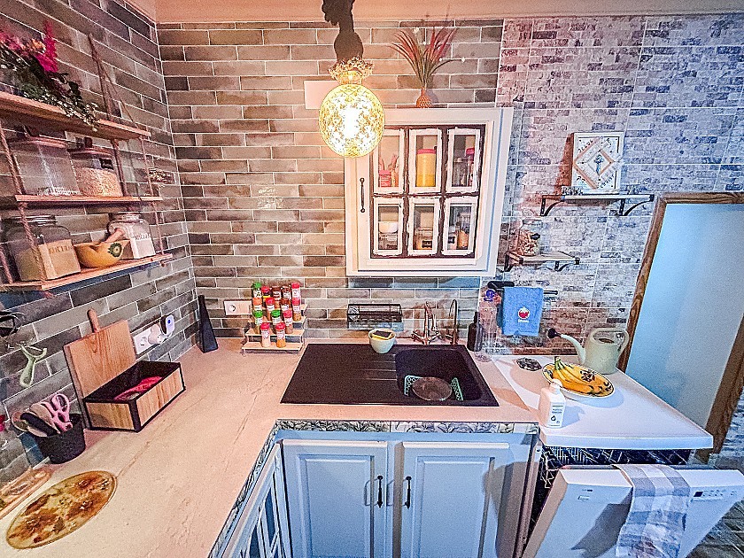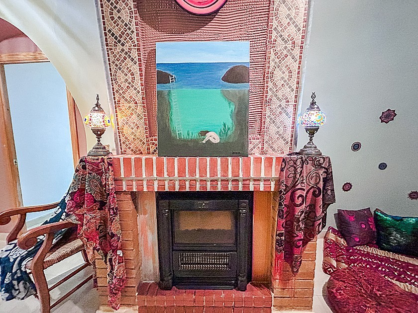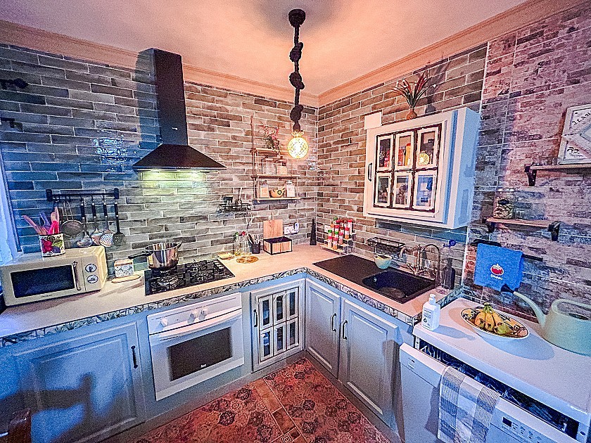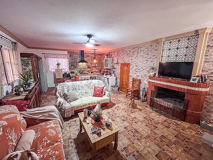 Im Obergeschoss befindet sich ein offenes Wohn- und Esszimmer mit Kamin und Klimaanlage, integriert in die Küche. Die Küche wurde vor nur 7 Monaten komplett renoviert, ist mit einer Osmoseanlage ausgestattet und verfügt über eine separate Speisekammer.