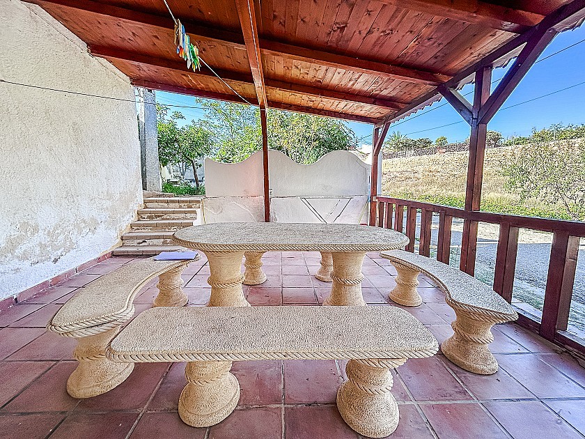 Veranda: überdachter Außenbereich, nicht Teil der Höhle, ideal als Treffpunkt oder zur Entspannung.