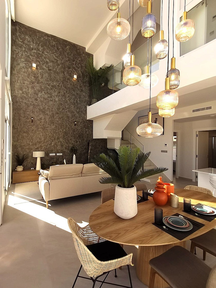 Wir freuen uns, Ihnen diese atemberaubende, bezugsfertige Neubauvilla in der exklusiven Wohnanlage „Las Lagunas“ in Quesada präsentieren zu dürfen. Dies ist eine seltene Gelegenheit, das perfekte Zuhause in bester Lage zu erwerben, komplett möbliert von einem führenden Team von Innenarchitekten.