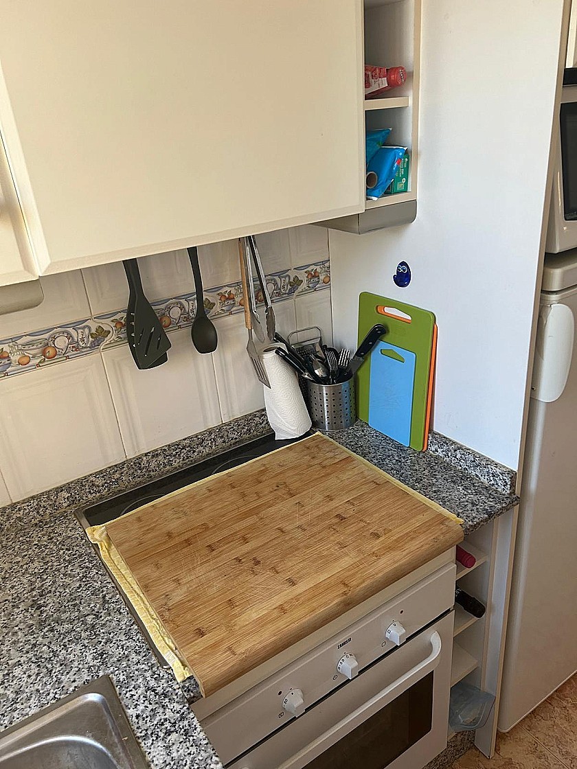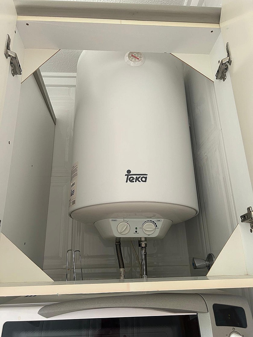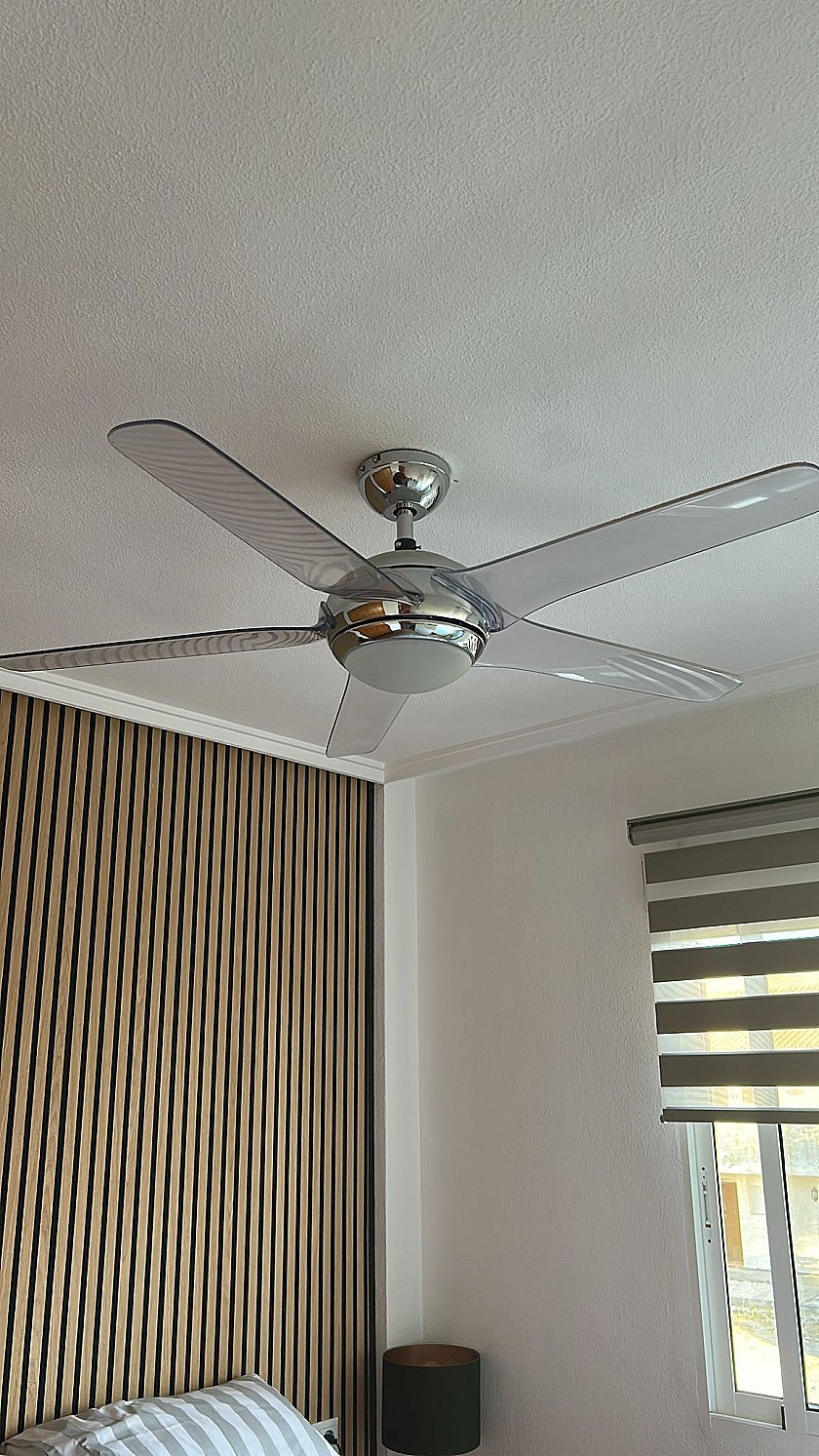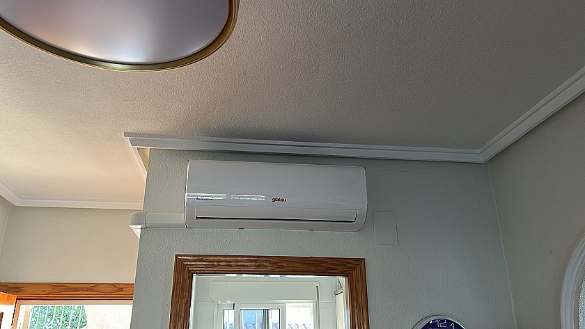 Neuer Pelletofen und Klimaanlage sowie Deckenventilatoren in allen Zimmern. Balkon neben dem Wohnzimmer, Südlage, und ausreichend Parkplätze vor den Wohnungen.