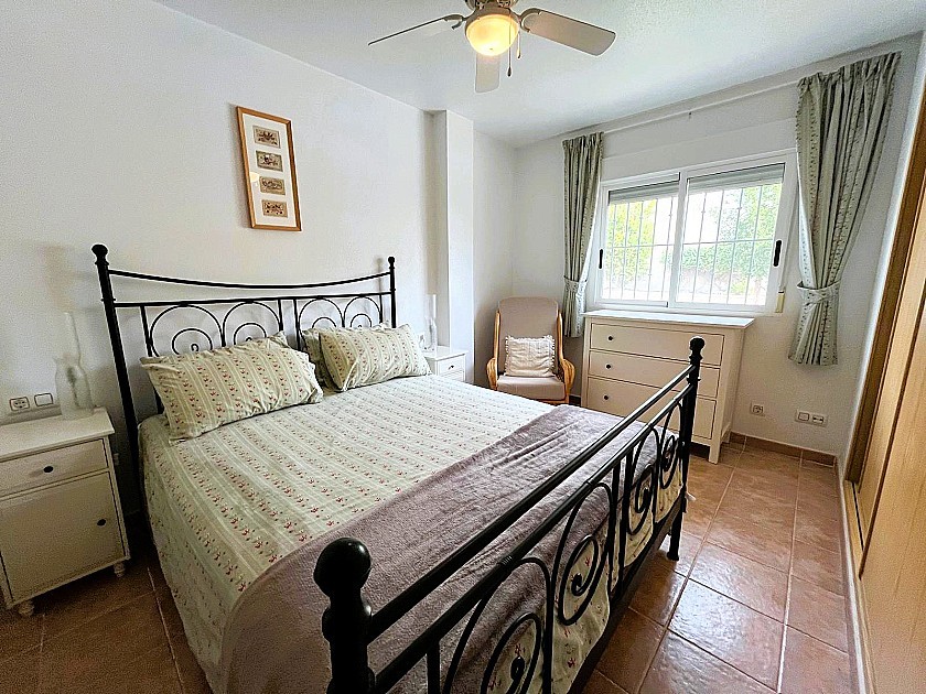 The property offers four spacious double bedrooms, two with en-suite bathrooms and all with fitted wardrobes, ceiling fans, and scenic views. The top-floor master suite features its own bathroom and a private terrace. On the ground floor, another bedroom opens directly onto the landscaped garden.