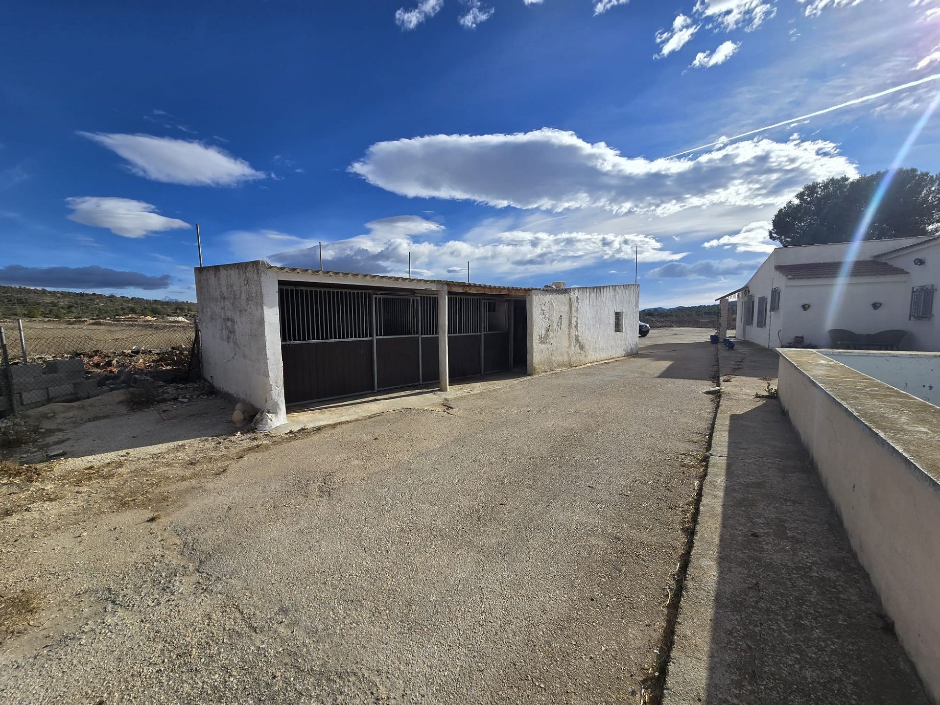 As you enter the driveway, you have a plot with olive trees on, and then this leads to double gates, with a plot fenced in for the horses. This in turn leads to the main gates for the house, where you enter, and are met with the stables to the left hand side, the pool and house to the right, and a further two gates leading to the extra land. All in, just around 11,000m2 of land gives plenty of space for the horses, and with the main house area being fenced as well, good for dogs as well!