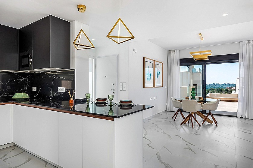 It is very easy to fall in love with a property with these characteristics, which also has large terraces for sunbathing all year round, a communal swimming pool with beautiful views of the forest, nature and the iconic lagoons of Torrevieja - La Mata. This new development is located in San Miguel de Salinas, also known as the "Balcony of the Costa Blanca". It is one of the most peaceful and quietest Mediterranean villages with the outstanding panoramic views over the Alicante coastline and its natural landscape. Its 100 metres above sea level allows you to enjoy breathtaking sunsets and privileged views of the place.