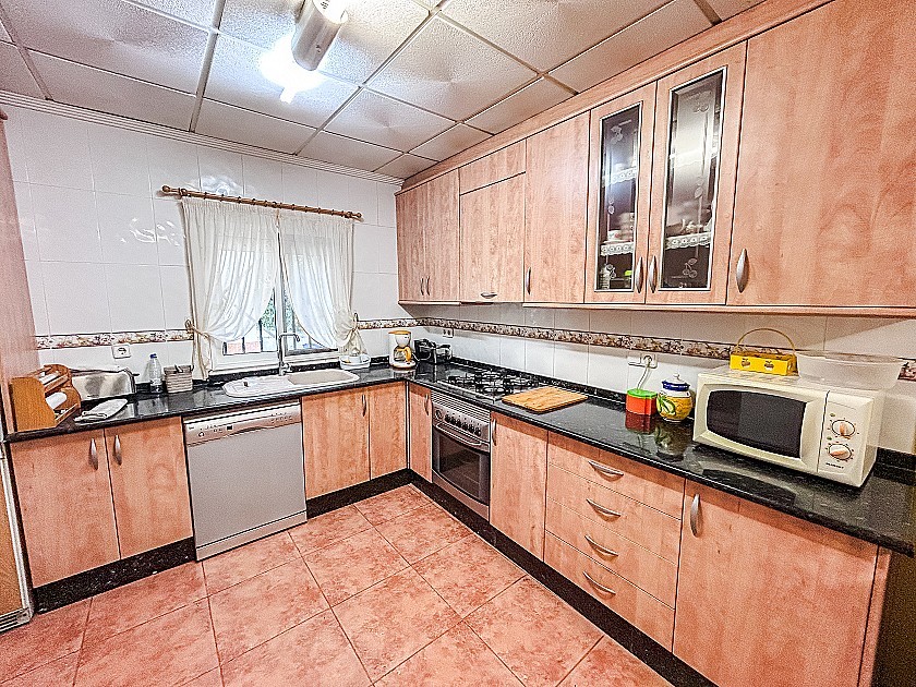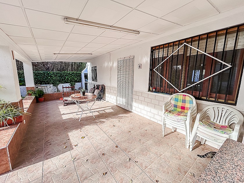 The villa offers 151 m² of built space with a functional and comfortable layout. It features four bedrooms, one full bathroom, a kitchen with dining area and fireplace, and a separate living room with air conditioning, ensuring year-round comfort. An additional air-conditioning unit has been installed in the hallway leading to the bedrooms, improving climate control throughout the sleeping area. The property is in excellent condition and move-in ready. It is sold fully furnished.