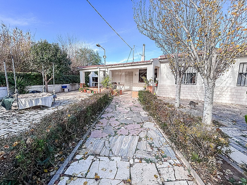 For sale: a detached villa built in 2002, located in a peaceful area between Sax and Elda. The property offers privacy, excellent access, and a privileged natural setting. It sits on a total plot of 3,455 m², of which 855 m² correspond to the main area where the house and facilities are located. The remaining 2,600 m² are situated directly in front of the house (not attached but very close) and include approximately 30 productive olive trees.