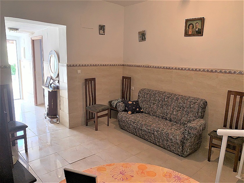 Across the driveway we have the other main house, a lovely old Spanish property with entrance hall lead-ing to three double bedrooms, and the living area which has a small ramp for mobility purposes, leading up into the fitted kitchen with dining table and larder room.
