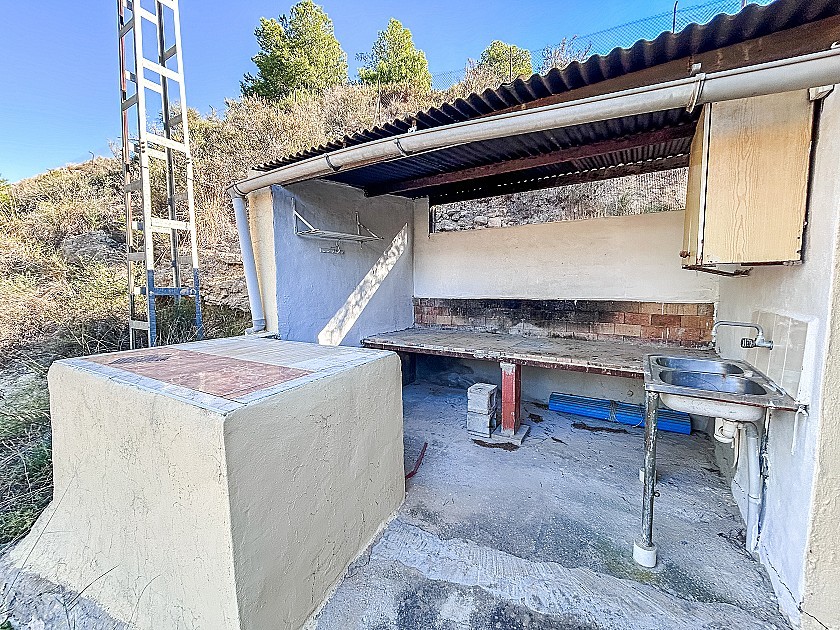 Op het perceel bevinden zich diverse extra voorzieningen: een bassin met berging, dat momenteel wordt gebruikt als zwembad, en een barbecue en zomerkeuken, ideaal voor buitenleven. Er is tevens een apart bijgebouw dat perfect kan dienen als opslagruimte, werkplaats, kantoor of mogelijke gastenaccommodatie. Verder beschikt het eigendom over een waterreservoir (aljibe), irrigatiewater, aansluiting op het elektriciteitsnet en een elektrische toegangspoort.