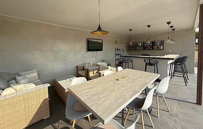 Buiten vindt u een heerlijk terras met uitzicht op het zwembad, perfect om af te koelen op een warme zomerdag, en een speciale zomerkeuken, ideaal om gasten te ontvangen. Deze villa heeft het allemaal, is instapklaar en biedt de perfecte gelegenheid om uw ontspannen mediterrane levensstijl in Spanje te beginnen.