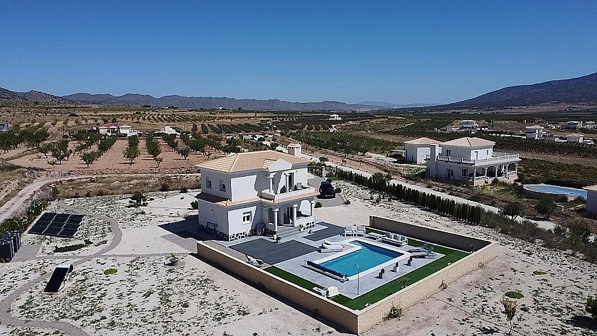 Met trots presenteren wij u deze prachtige villa met 3 slaapkamers en 3 badkamers in Pinoso, een verwarmd zoutwaterzwembad en een spectaculair uitzicht.