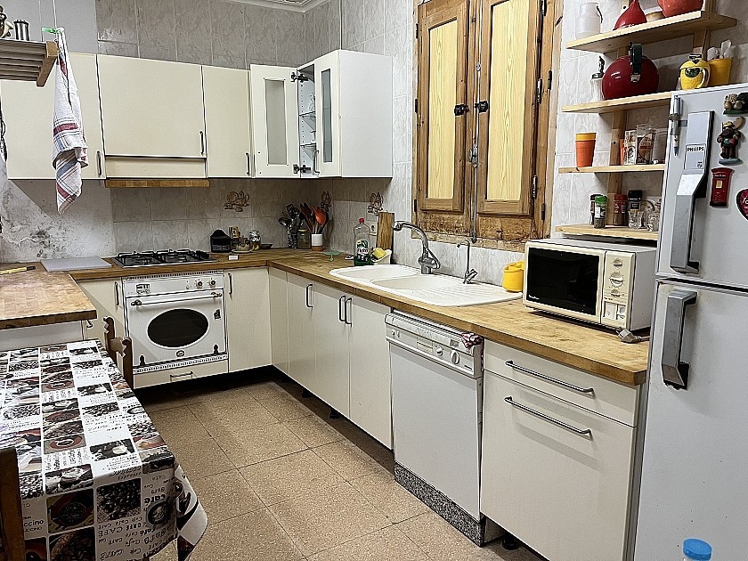 De woning heeft een woonoppervlakte van 138 m² en is momenteel bezig met een renovatie. Er is nu iemand nodig die zich met hart en ziel inzet om er een prachtig huis van te maken. Bij binnenkomst komen we in een grote open woonkamer met een massief marmeren vloer. Links bevindt zich de eerste slaapkamer met tweepersoonsbed, die ook is voorbereid voor een en-suite badkamer. Achter in de woonkamer, rechts, bevindt zich een grote open keuken en eetkamer met een karakteristieke open haard, een massief houten aanrechtblad, een gaskookplaat met oven, een afzuigkap, een koel-vriescombinatie en een vaatwasser.